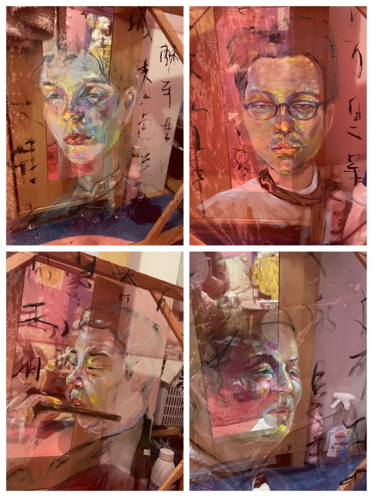 Absent, huile sur voile, 150x200cmx4, 2022