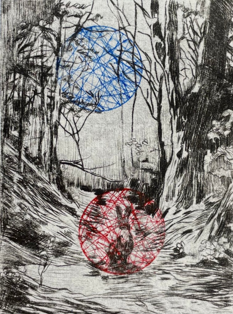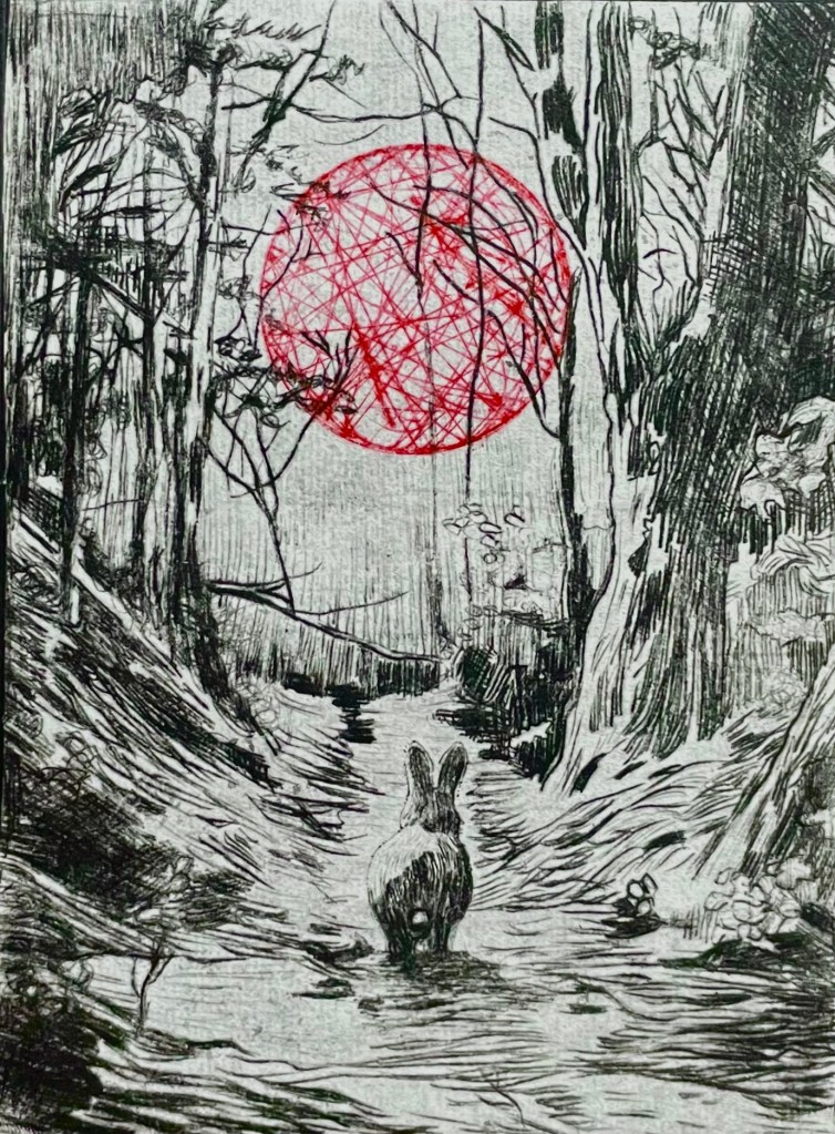 Forêt de lapins-2, Gravure, Chine-Collé, Papier chinois, 2023