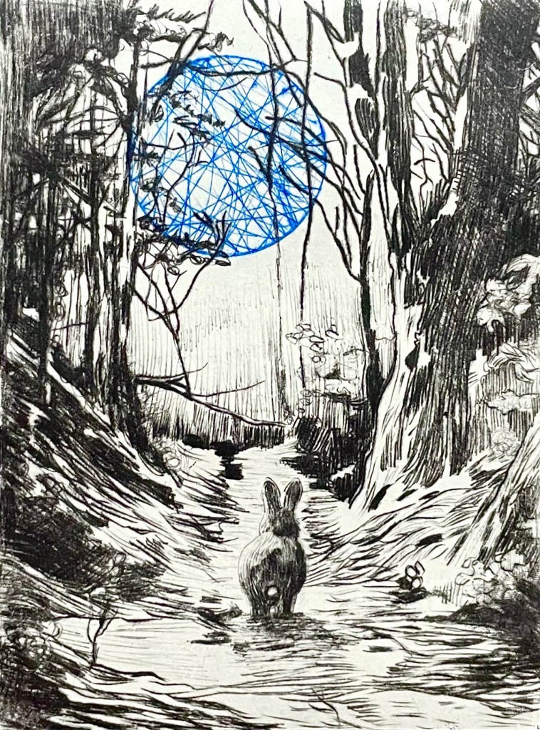 Forêt de lapins-5, Gravure, Chine-Collé, Papier chinois, 2023