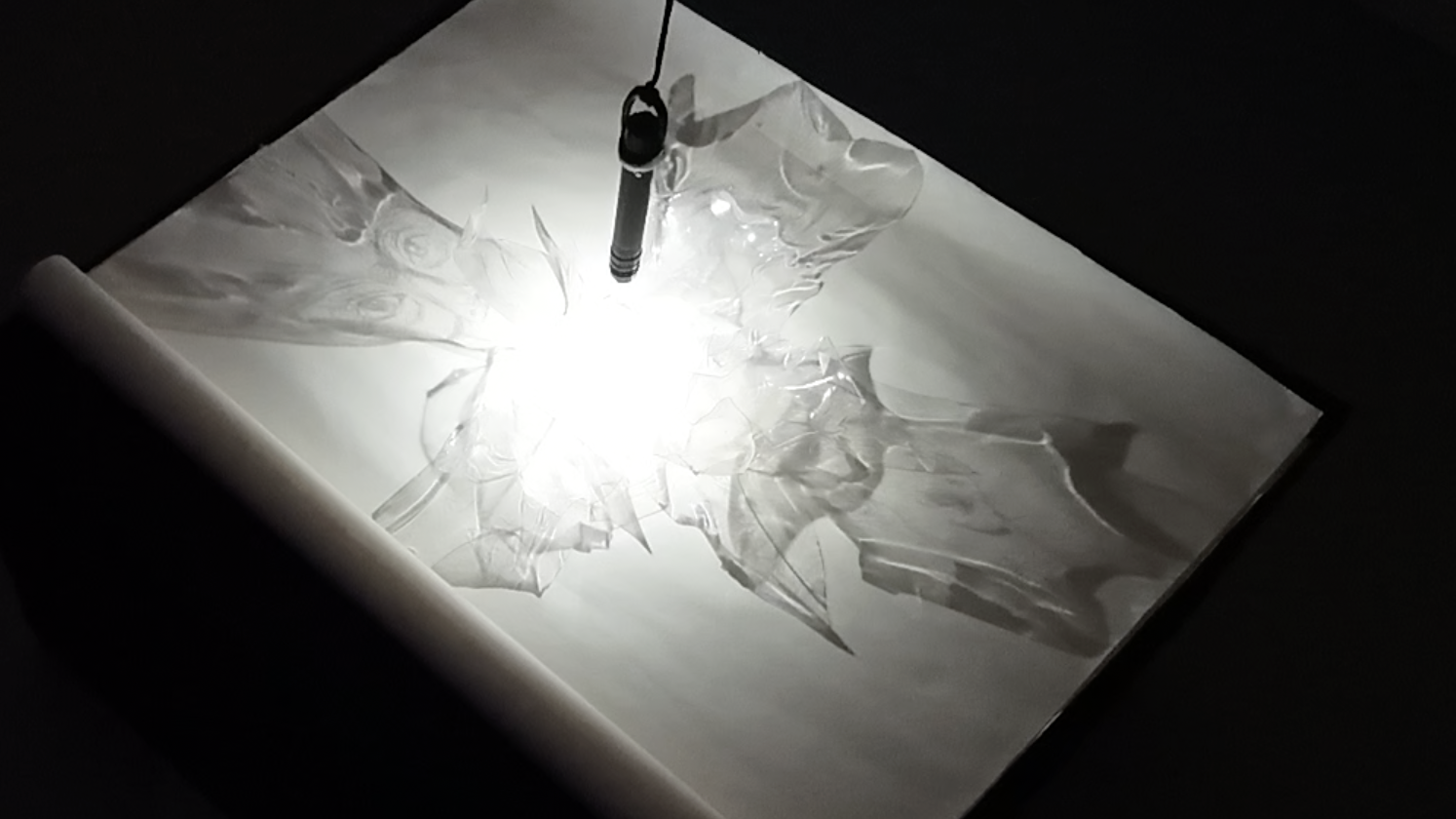 Artificiel Âme, Installation, papier de Chine, Plastique transparent, éclairage, machines télescopiques linéaires, 80x60cm, 2022…>>