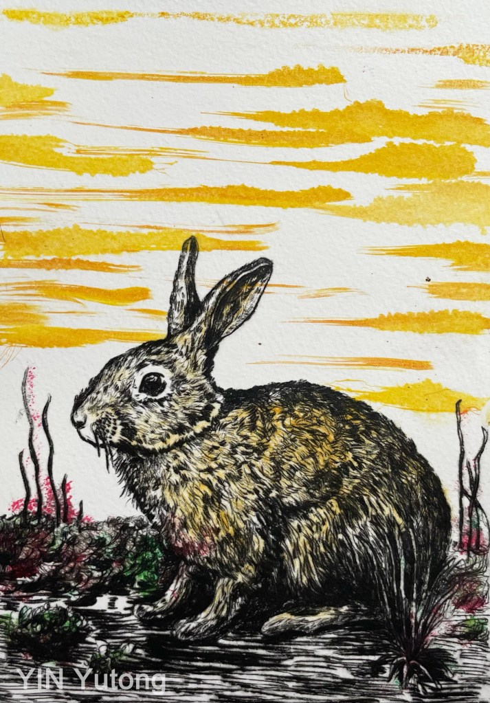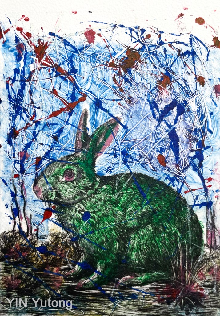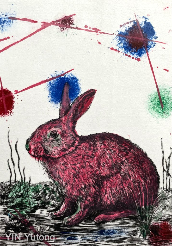 Lapin2-3, Gravure, acrylique 15x21cm, 2023