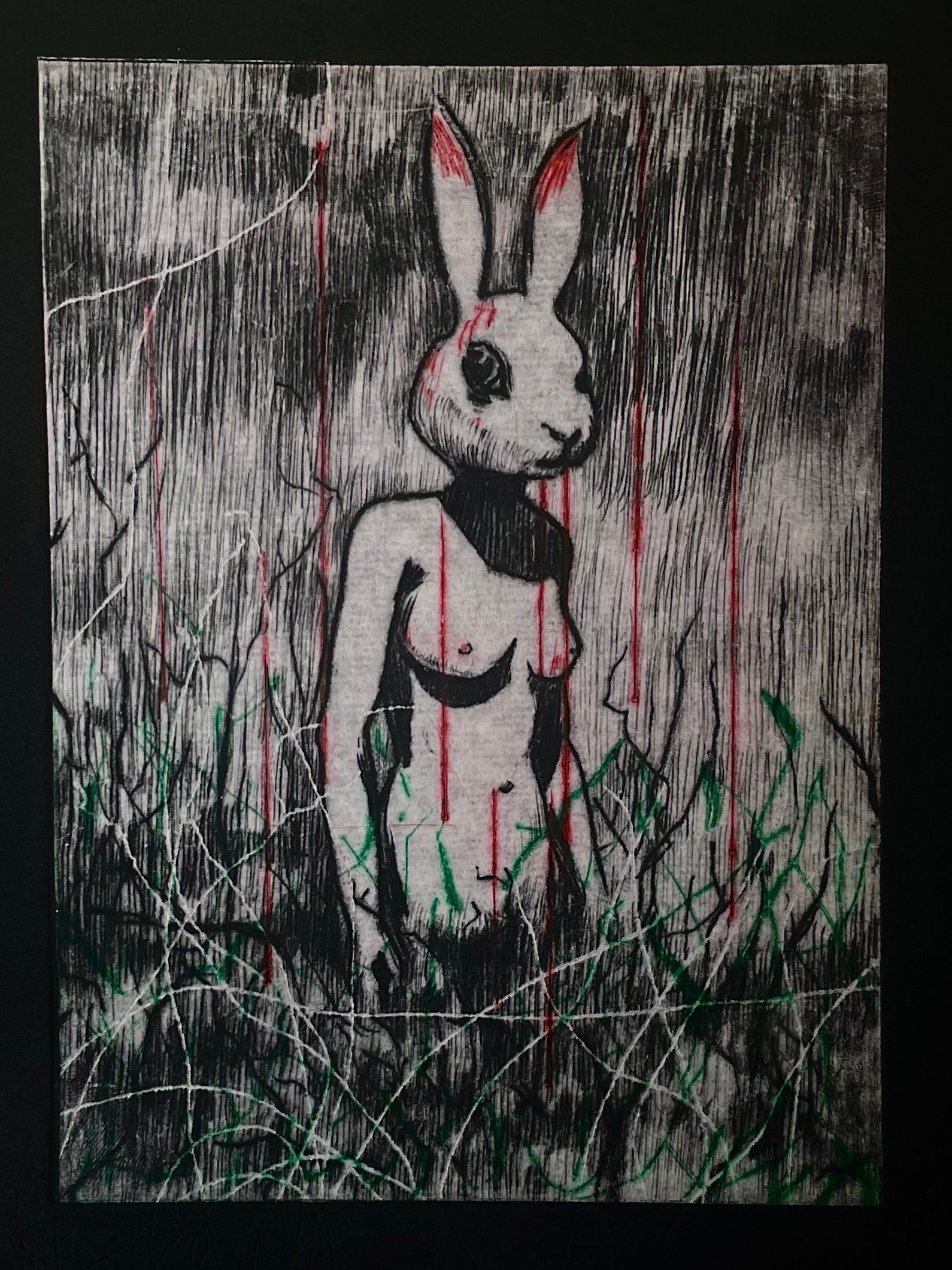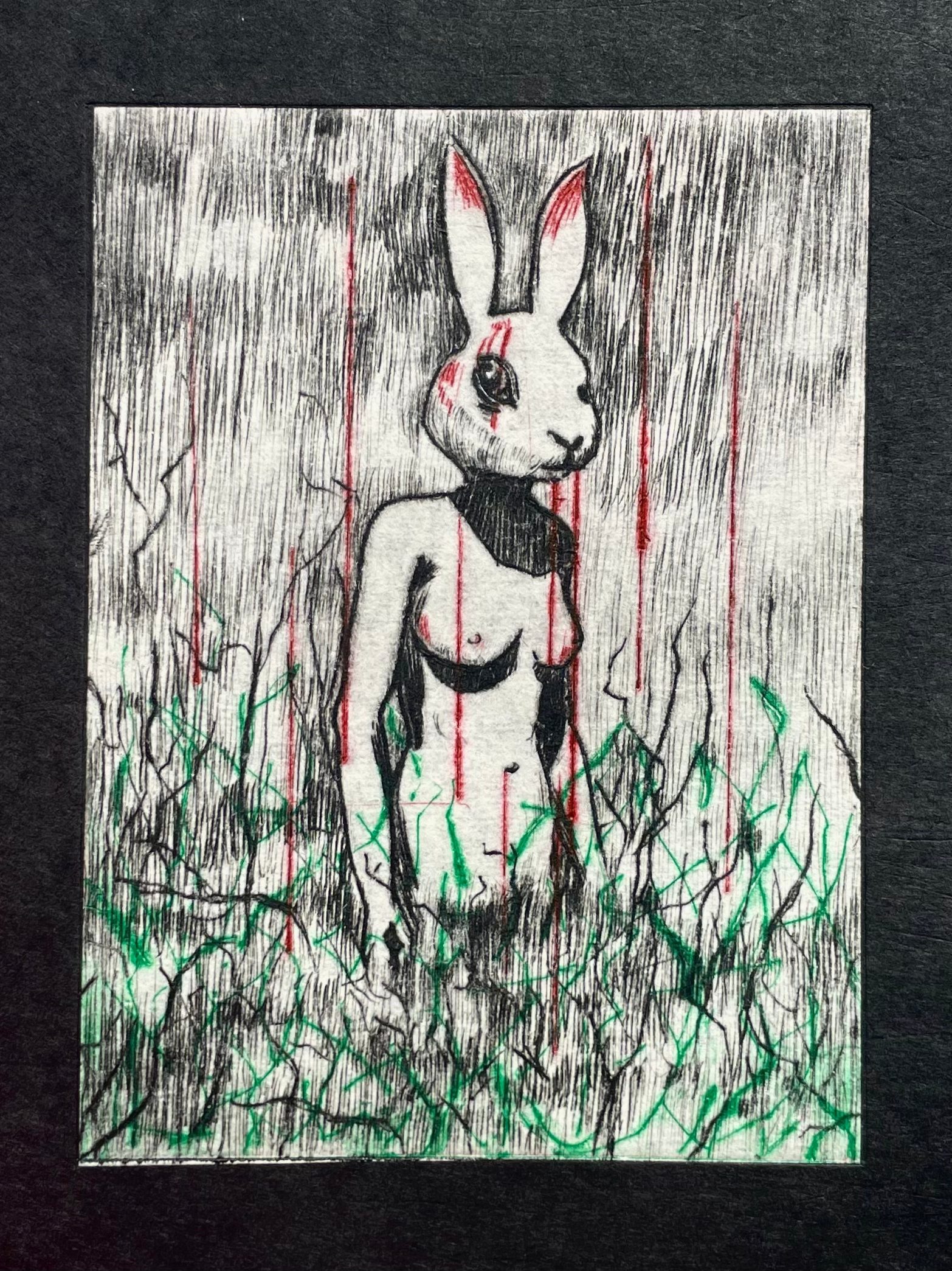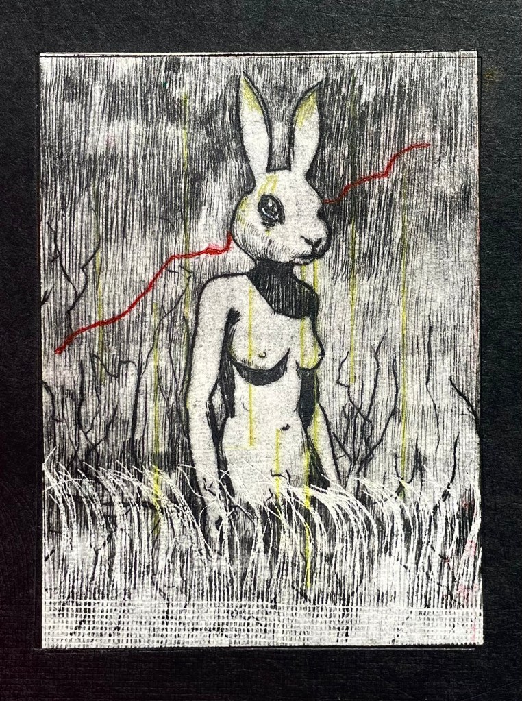 Mythologie3, Gravure, Chine-Collé, Papier chinois, 11x15cm, 2023