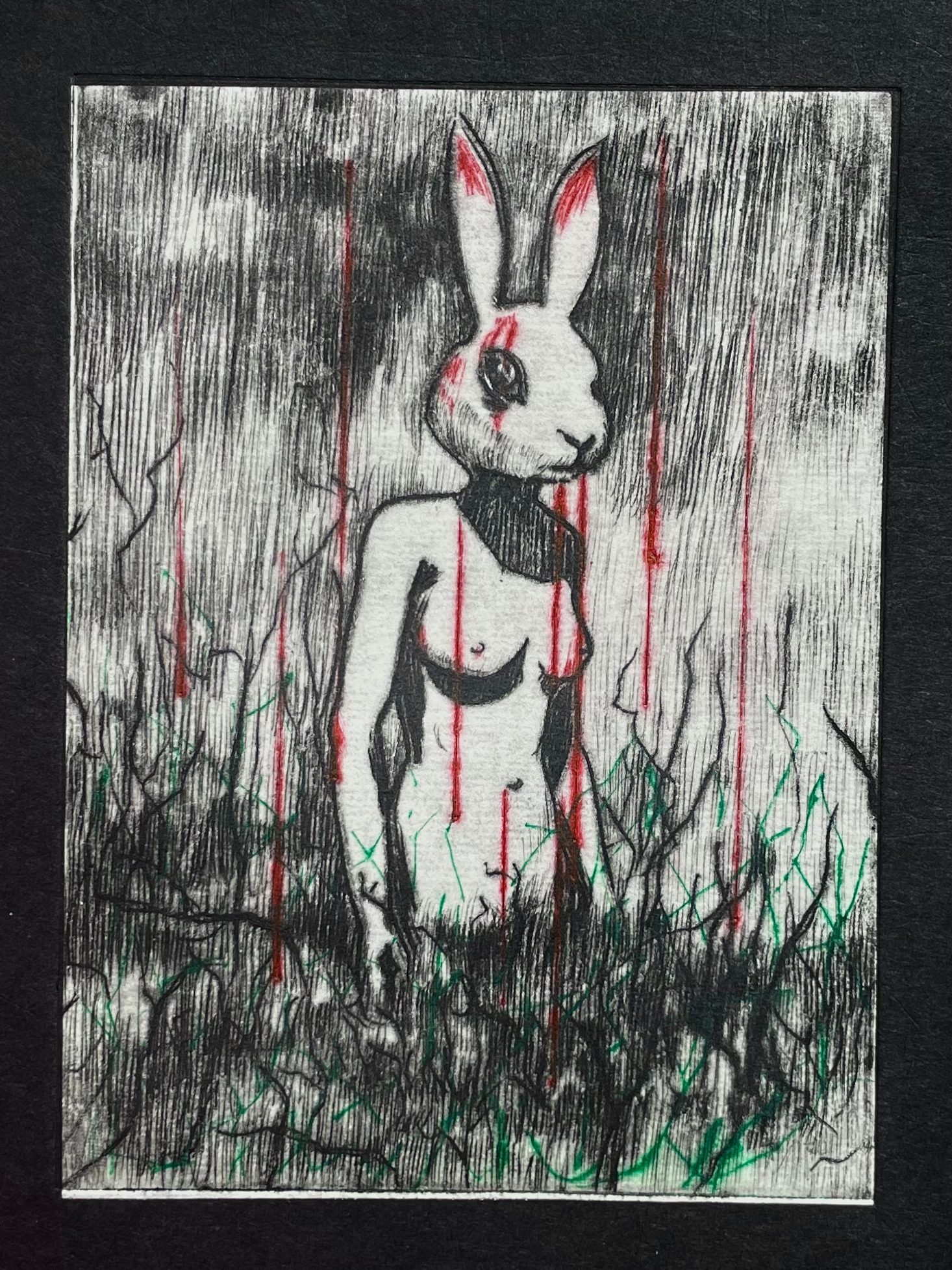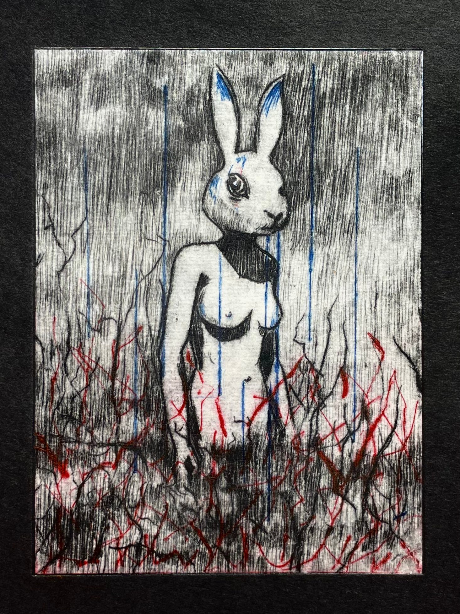 Mythologie5, Gravure, Chine-Collé, Papier chinois, 11x15cm, 2023